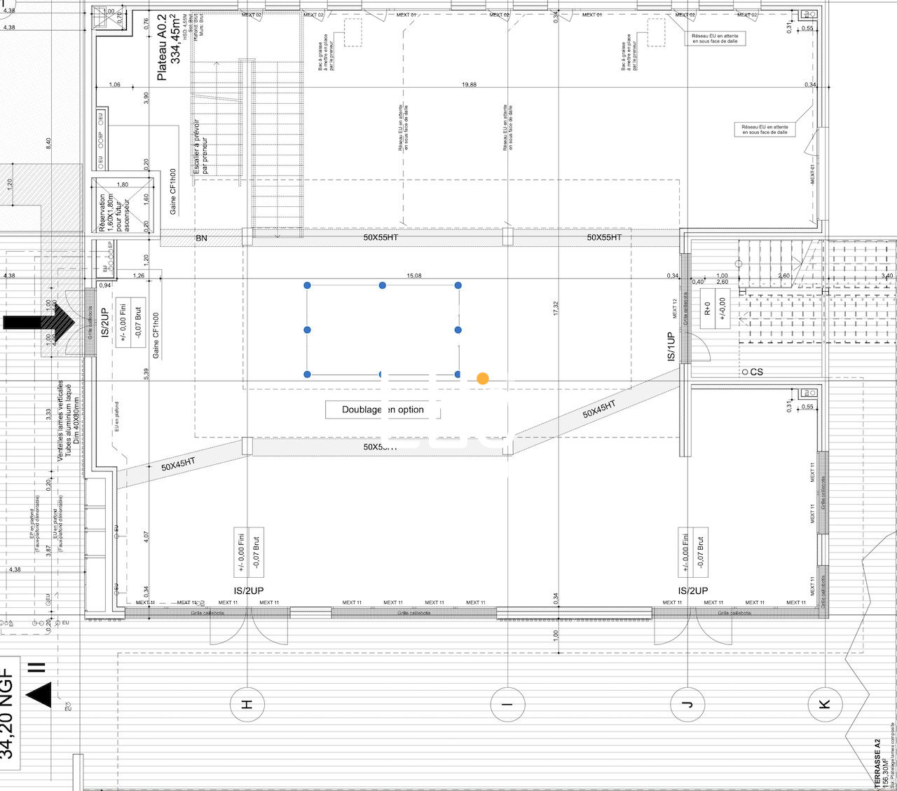 A louer local commercial neuf 320 m2, cellule commerciale d'angle livrée brut de béton huisserie posée, fourreaux et fluide en attente. Linéaire vitrine 19m.